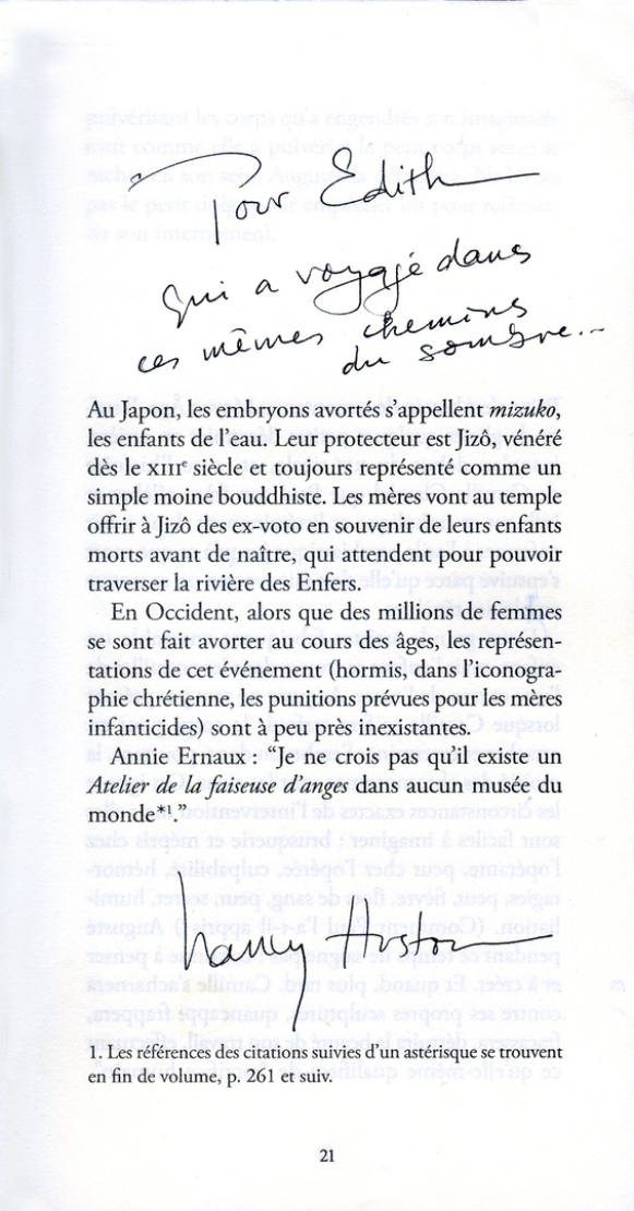 « Au japon, les embryons avortés s’appellent mizuko, les enfants de l’eau. Leur protecteur est Jizô vénéré dès la XIIIème siècle et toujours représenté comme un simple moine bouddhiste. Les mères vont au temple offrir à Jizô des ex voto en souvenir de leurs enfants morts avant de naître, qui attendent pour pouvoir traverser la rivière des Enfers ».